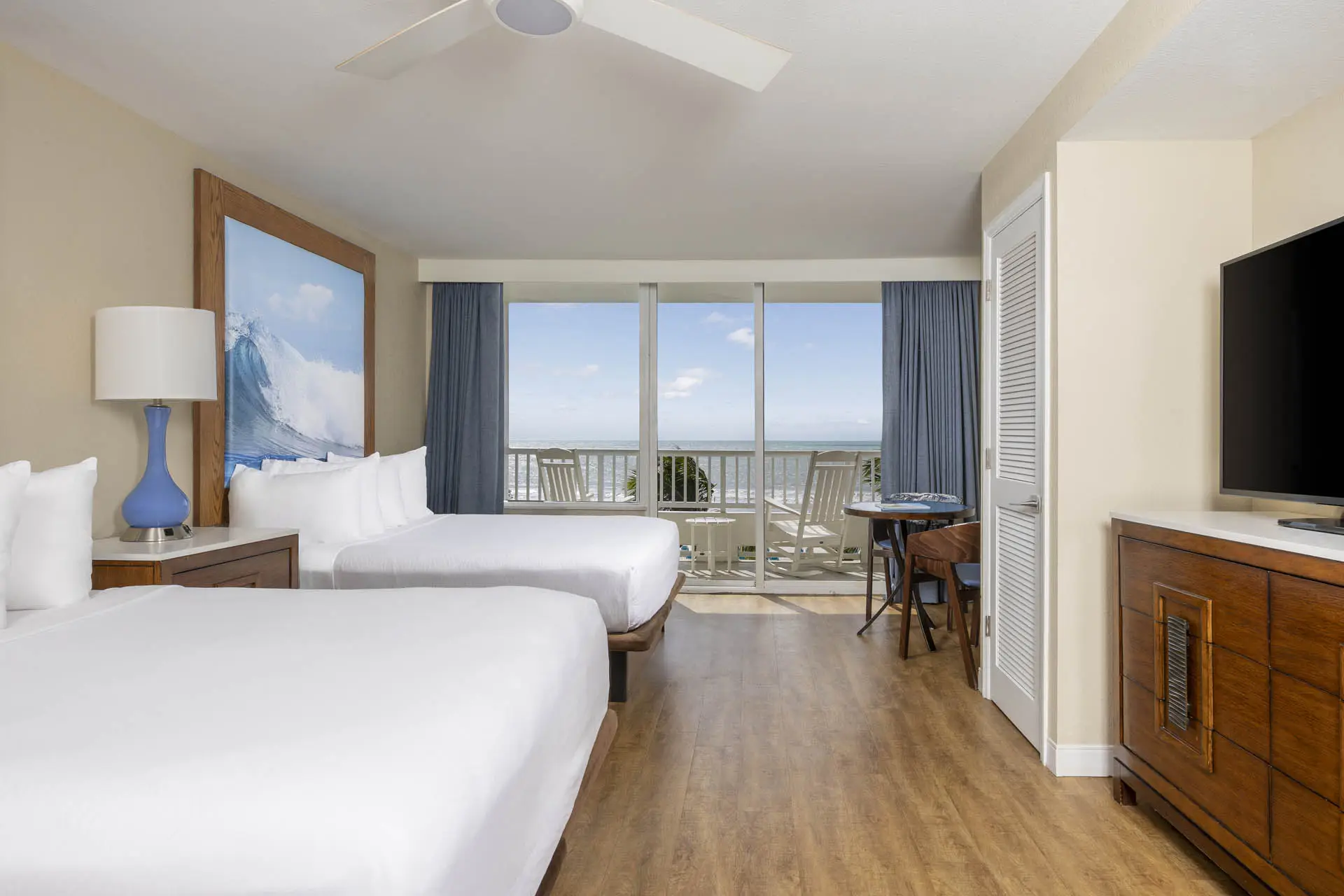 - These rooms are located in the Tiki Building and boast direct views of Lido Beach from a spacious balcony