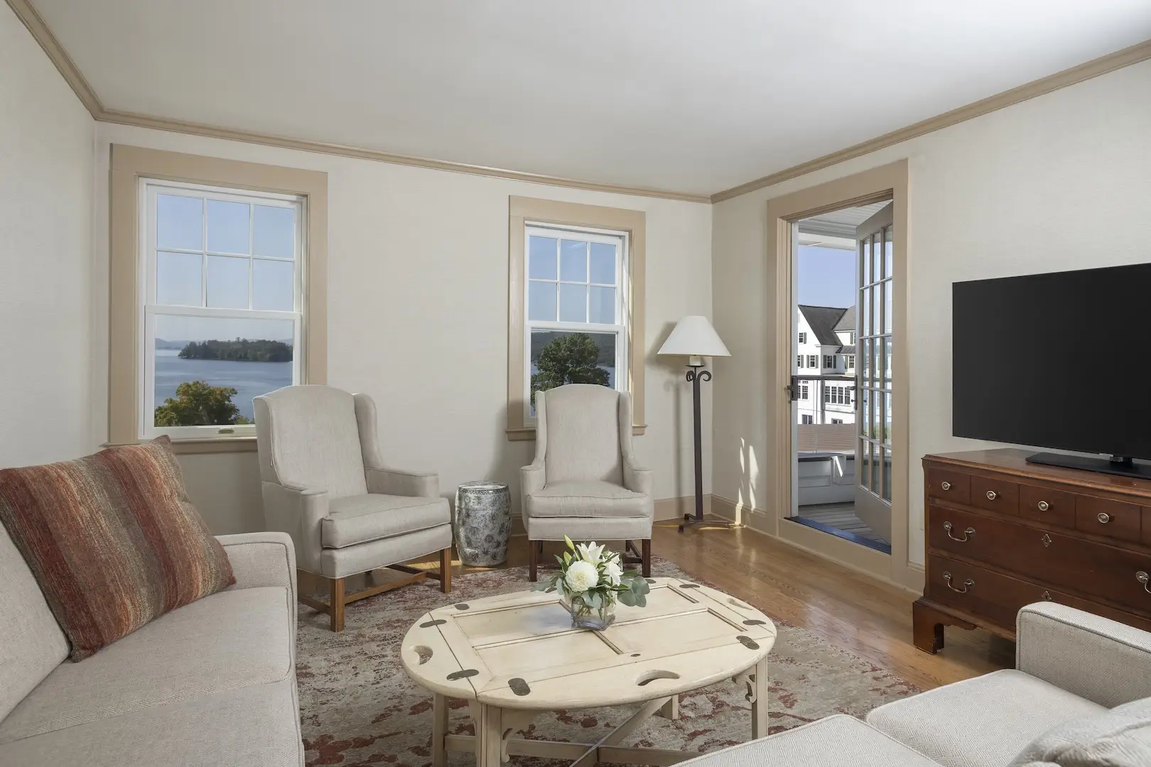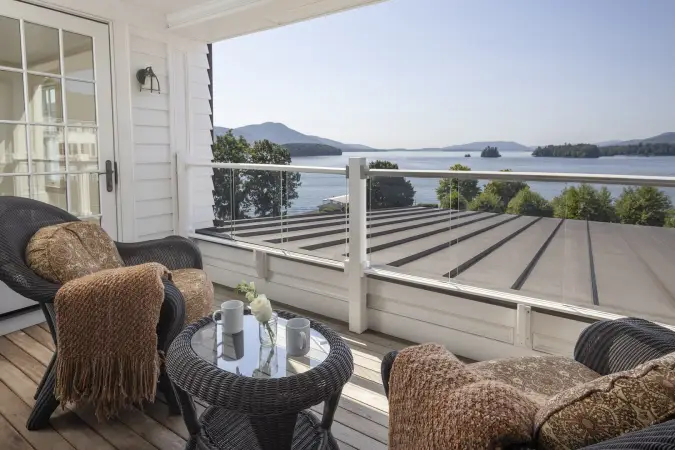 - Features a luxe king bed, Adirondack-inspired decor, and breathtaking views of Lake George
